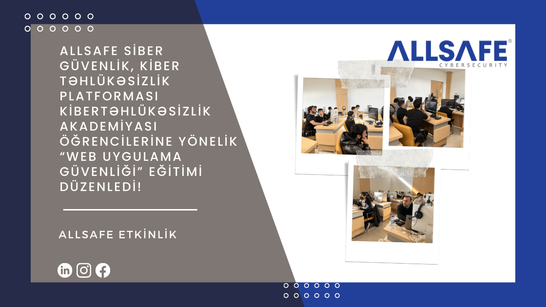 ALLSAFE Siber Güvenlik, siber güvenlik uzmanlarından oluşan ekibin temsilcileri Buğra TÜRKOĞLU ve Oğuzhan KARA tarafından, Azerbaycan’da Bakı Gənclər Mərkəzi (Bakü Gençlik Merkezi)’nde Kiber Təhlükəsizlik Platforması Kibertəhlükəsizlik Akademiyası (Siber Güvenlik Platformu Siber Güvenlik Akademisi) öğrencilerine yönelik “Web Uygulama Güvenliği” (Application Security 101 Burp Suite – Application Security Testing Software 101OWASP TOP10) eğitimi düzenlendi.